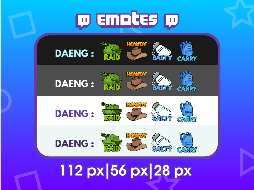 4x Emote for Streamer | Twitch Emote | Discord Emote | Carry | Raid | Salty | Howdy | Emote Bundle